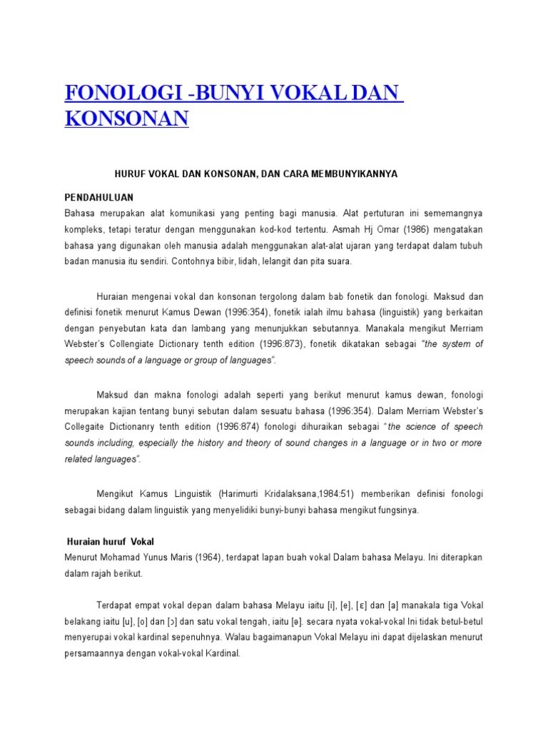 9.0 huruf vokal dan konsonan bahasa melayu tahun 1. Dalam dasar sebutan baku bahasa malaysia, ada dinyatakan bahawa bunyi perlu disebut fonemik.